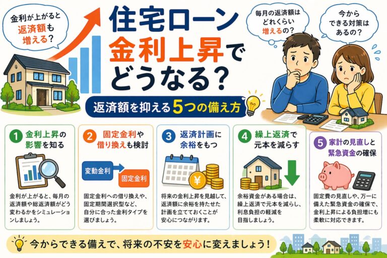 「変動と固定、どっちが安全なんだろう…」「金利が上がってきているのは知ってるけど、じゃあ固定にすれば本当に安心なの?」 マイホームの購入を検討しながら、毎晩スマホで情報を調べては迷いが増えている。そんな方も多いのではないでしょうか。 住宅ローンは人生最大の買い物です。金額が大きいぶん、選択を間違えたときのダメージも計り知れません。でも逆に言えば、正しく選べるだけで数百万円単位の差が生まれる場面でも […]